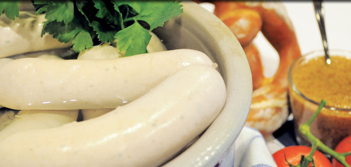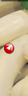 Nicht nur südlich des Weißwurstäquators genießt die Weißwurst große Beliebtheit. Etwas feiner zerkleinert und eine Idee fester im Biss steht die abgewandelte, fränkische Variante dem Bayerischen Original in nichts nach. Ob als Brotzeit, zum Frühschoppen oder als Haupt-mahlzeit eignet sich die Weißwurst hervorragend als schnell zubereitetes Gericht. Mit etwas süßem Senf serviert, wird jeder Genießer ins schwärmen kommen.