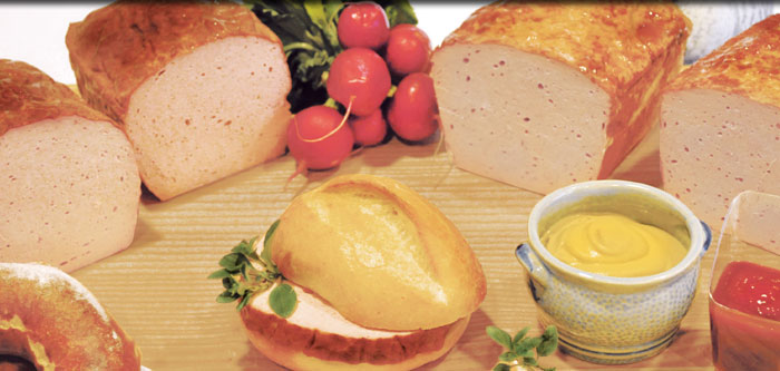 Der fränkische Imbissklassiker schlechthin! Mit glutenfreien Röstzwiebeln verfeinert, wird der gebackene Fleischkäs, neben dem kleinen Imbiss, auch als Mahlzeit in geselliger Runde sehr geschätzt. Egal ob mit süßem oder lieblichem Senf bestrichen, mit Gemüse jeder Art und Spiegelei oder einfach mit Kartoffelsalat als Beilage serviert, kann dieser Spezialität fast niemand wiederstehen.